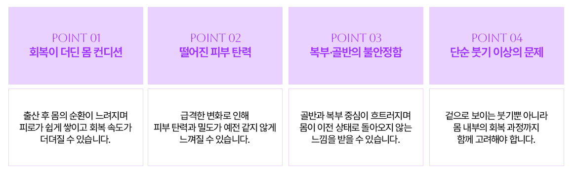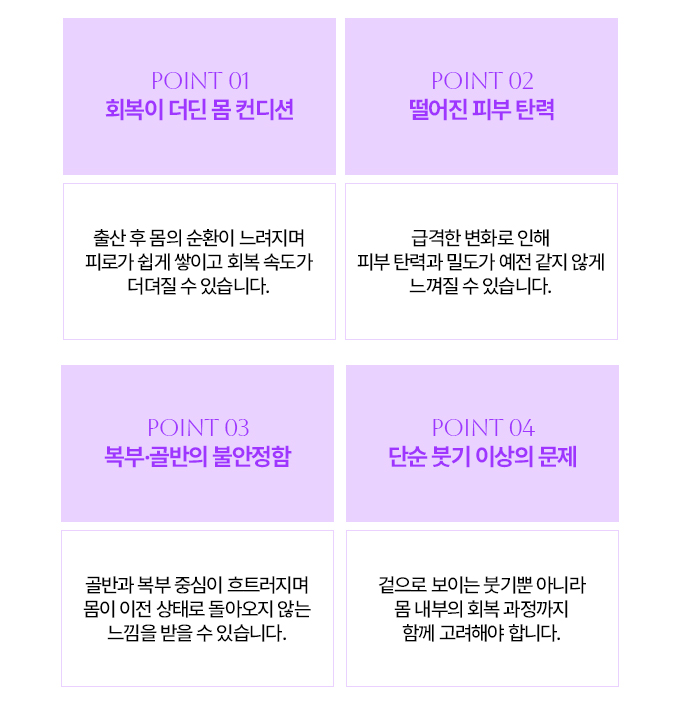 산후로 약해진 조직과 피부 상태를 다시 회복시키는 단계까지
